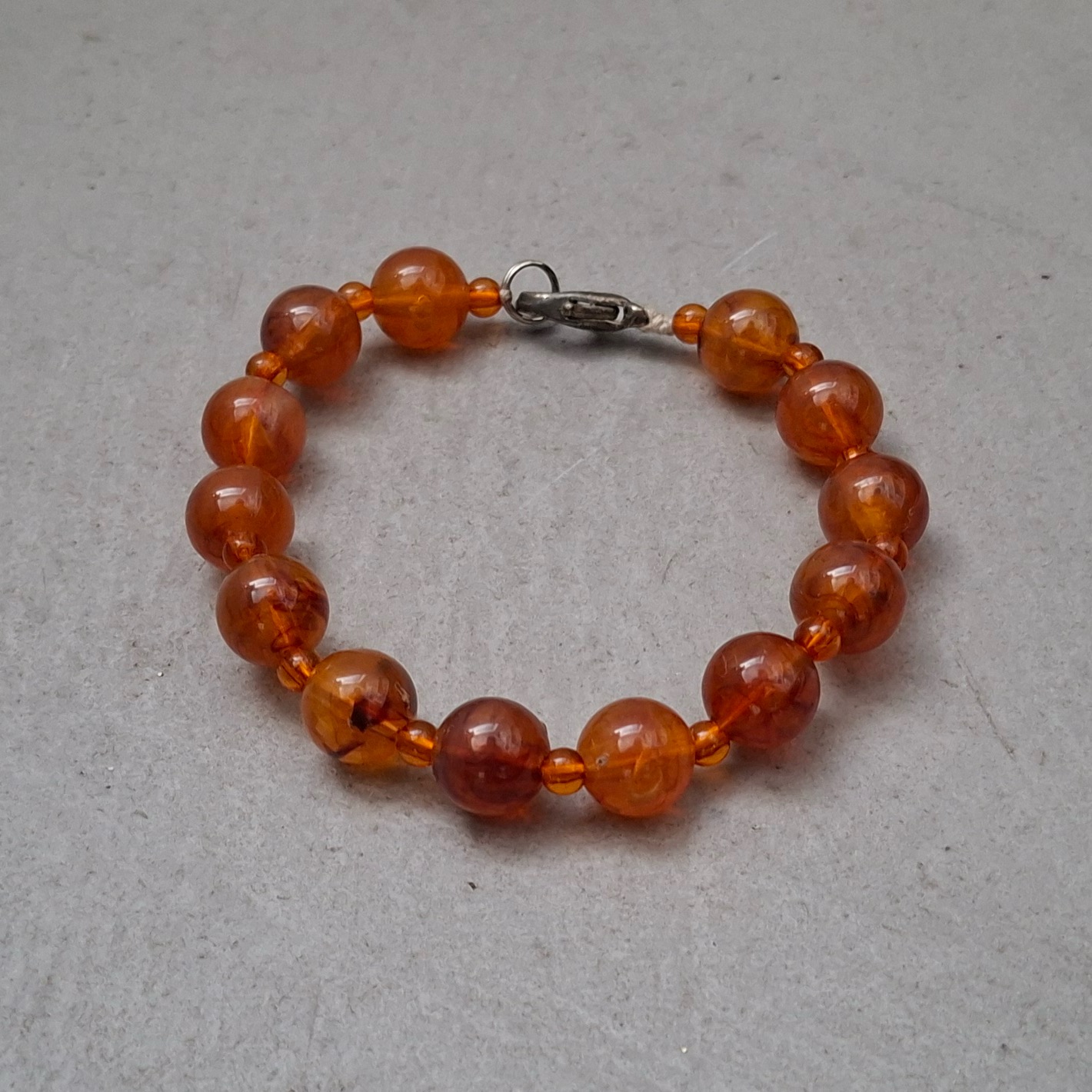 Dziewczęca bransoletka z koralików podobnych do bursztynów.