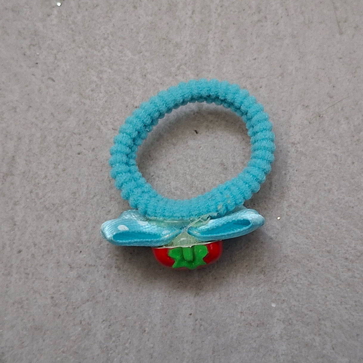 Gumka do włosów w kształcie truskawki na kokardzie na gumie frotowej.